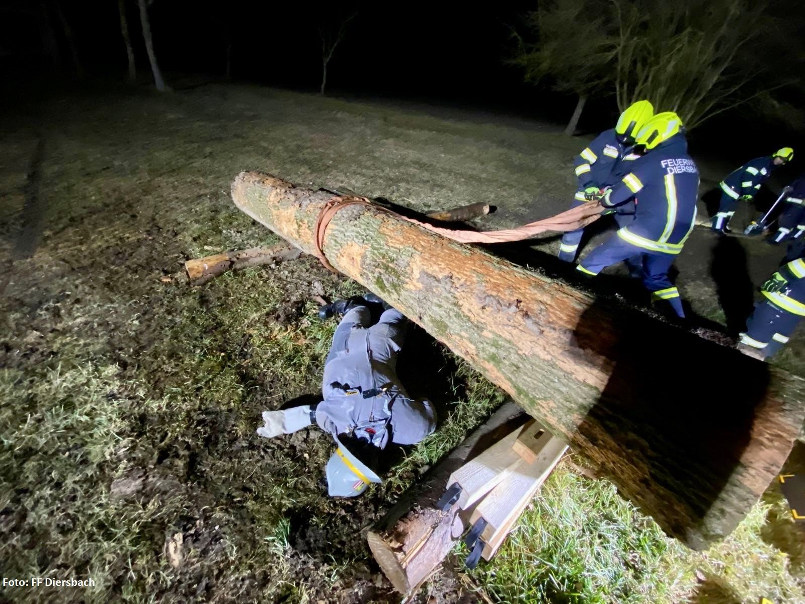 Am 28.02.2025 wurde mit der Seilwinde und dem Greifzug geübt. Dazu fuhren die Kameraden mit dem TLF und KDO-Fahrzeug nach Mayberg zum Übungsplatz. Hier fand die Mannschaft eine Person unter einem Baum eingeklemmt vor. Nach der Lagererkundung wurde der Platz entsprechend beleuchtet und abgesichert. Der Baum wurde mit den Hebekissen angehoben, dass die Person frei war. Zusätzlich wurde der Baum mit dem Greifzug rücksichert. Die anschließende Besprechung fügt nochmals alle Erkenntnisse und Tätigkeiten zusammen.