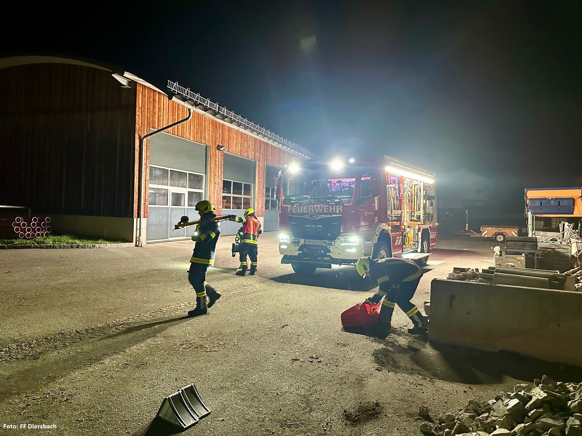 Am Übungskalender der FF Diersbach stand am 31.Jänner 2025 die neue Brandmeldeanlage der Fa. Sanube in Hartwagen. Dazu wurden vorab alle nötigen Komponenten der Brandmeldeanlage samt Schritte zur Abarbeitung eines Einsatzes theoretisch erklärt. Anschließend wurde ein Probealarm eingespielt, welche die Mannschaft abarbeitete. Vom Eintreffen der Feuerwehr, Besetzten und Bedienen des Feuerwehrbedienfelds wurde auch ein angenommener Brand in der Lagerhalle beübt. Dieser wurde mit einem Atemschutztrupp im Innenangriff gelöscht. Ebenfalls unterstützte die TLF-Mannschaft beim Unterstützen des Atemschutztrupps, Belüften der Halle, Vorbereiten der Wasserversorgung und Beleuchten der Einsatzstelle.