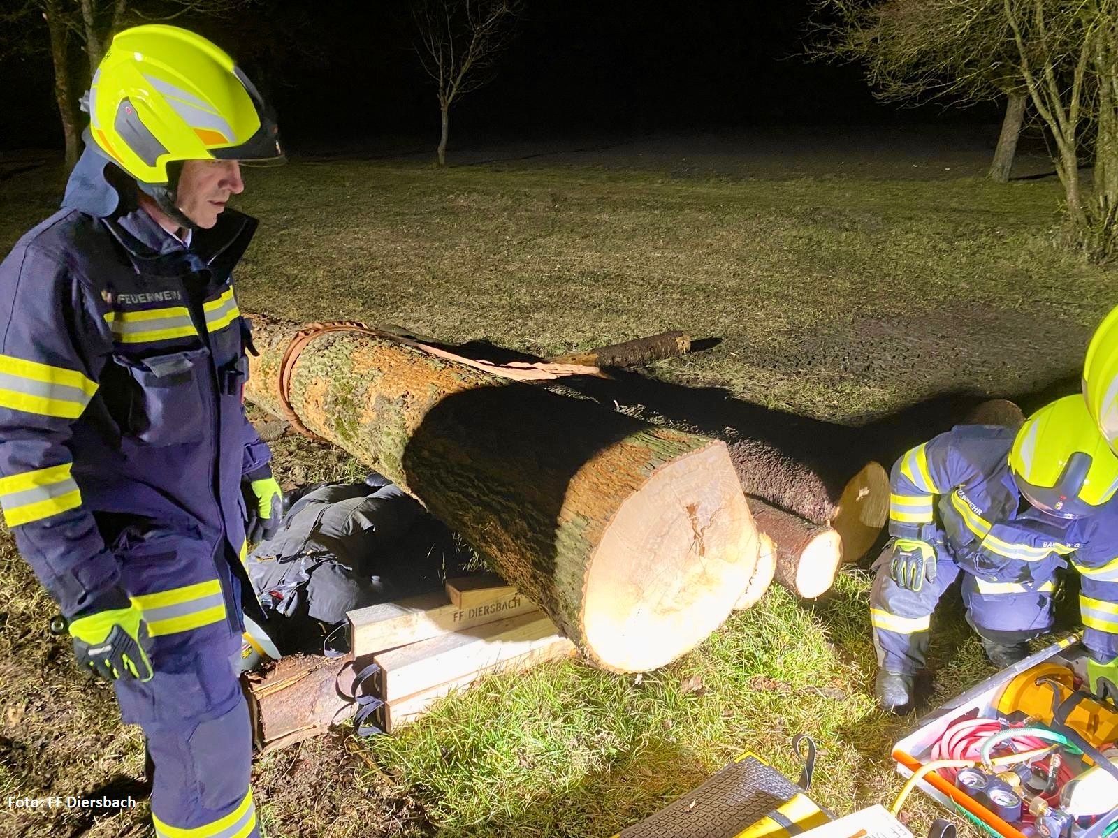 Abschließend wurden die Gerätschaften besprochen und vorgeführt. Da die FF Diersbach viele Hebe- und Bergewerkzeuge im TLF hat. Mit dem Sprichwort: „Alle Wege führen nach Rom“, war das Anheben eines Baumes nur eine Version davon.