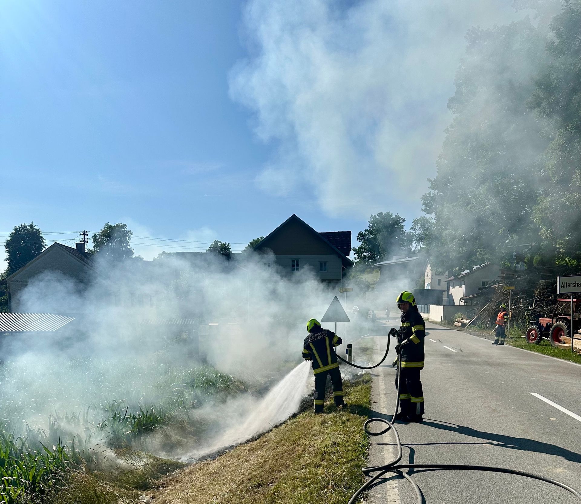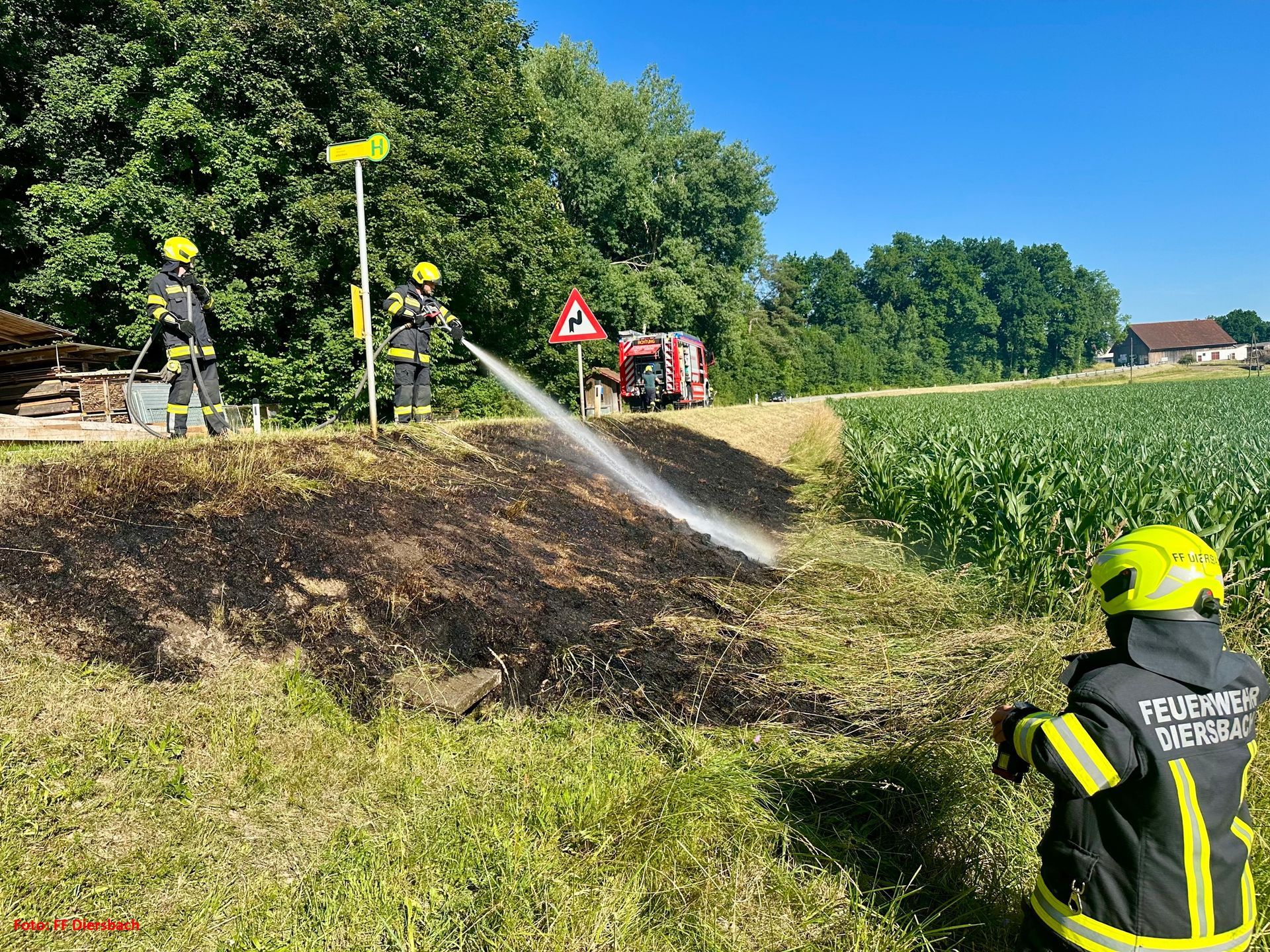 Die Feuerwehr Diersbach und Oberedt wurden am Sonntag, den 22.06.2025 um 17:18 Uhr zu einem Böschungsbrand nach Alfersham alarmiert.