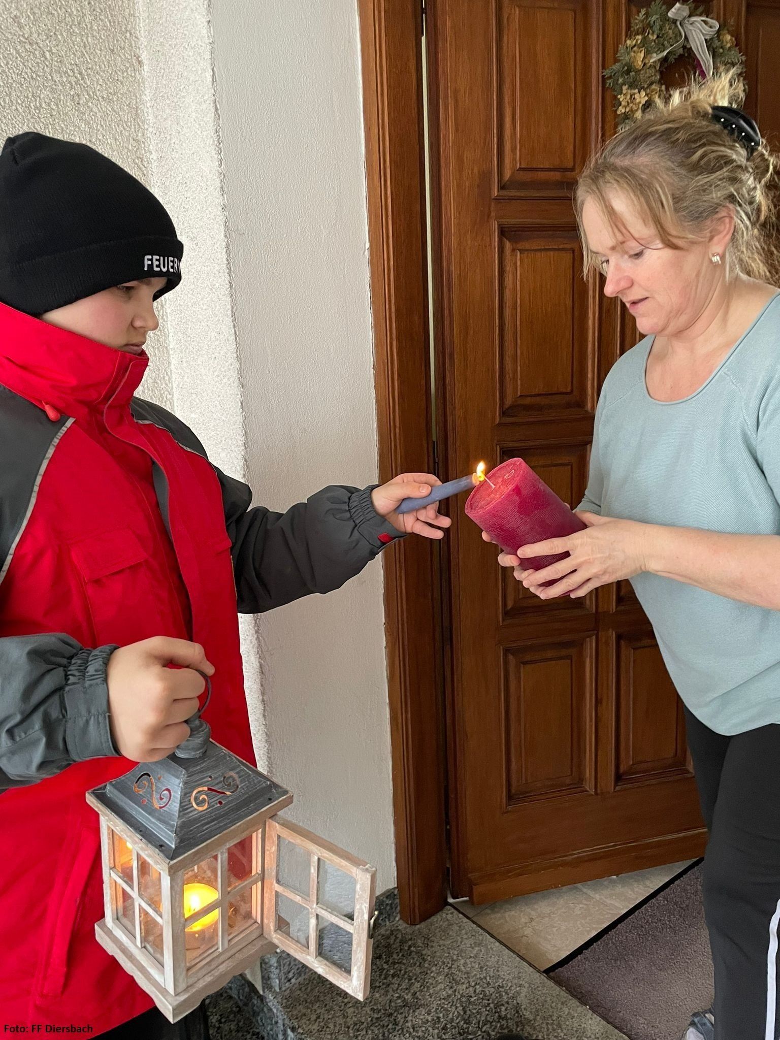 Die Jugendgruppe der FF Diersbach mit Unterstützung aus der aktiven Mannschaft verteilten am 24.12.2022 das Weihnachtslicht im Einsatzgebiet.