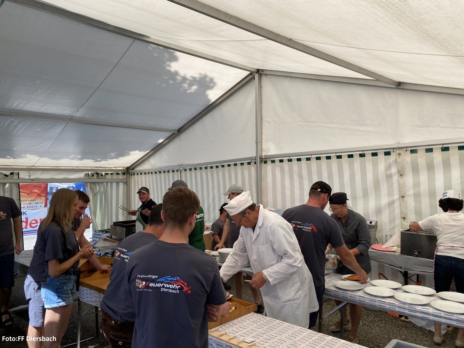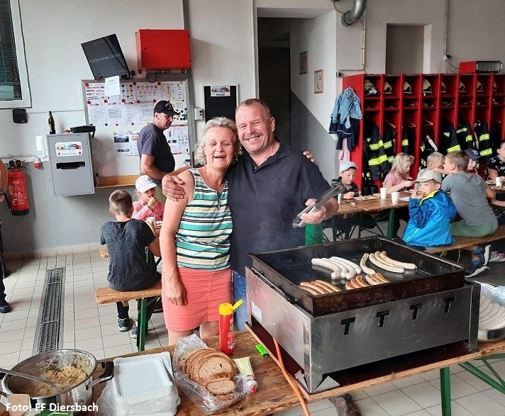 Zu Mittag ging es zurück zum Feuerwehrhaus nach Diersbach. Der Hunger und Durst war schon groß, welcher mit Bratwürstel und kühlen Getränken gestillt wurde!
