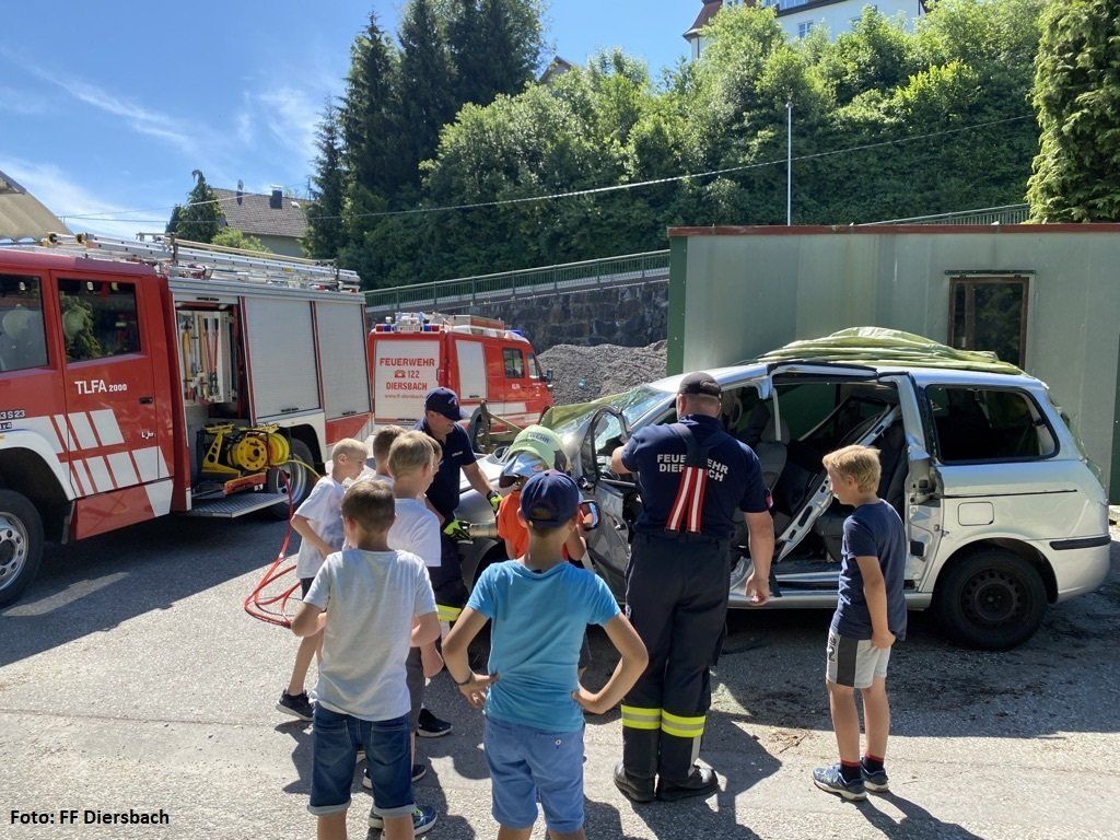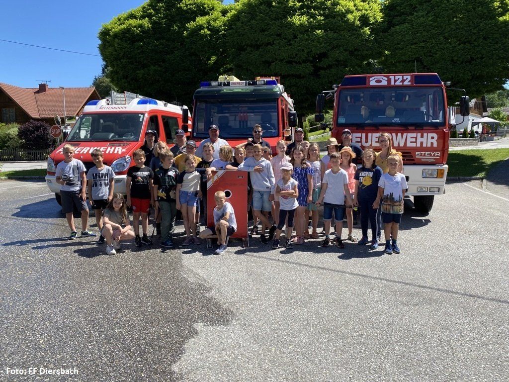 Im Zuge des Projektes „Gemeinsam.Sicher.Feuerwehr“ besuchten die drei Diersbacher Feuerwehren (Diersbach, Mitterndorf und Oberedt) am 15. Juni 2022 den Kindergarten und die Schüler -innen der 3. & 4. Klassen der Volksschule Diersbach.