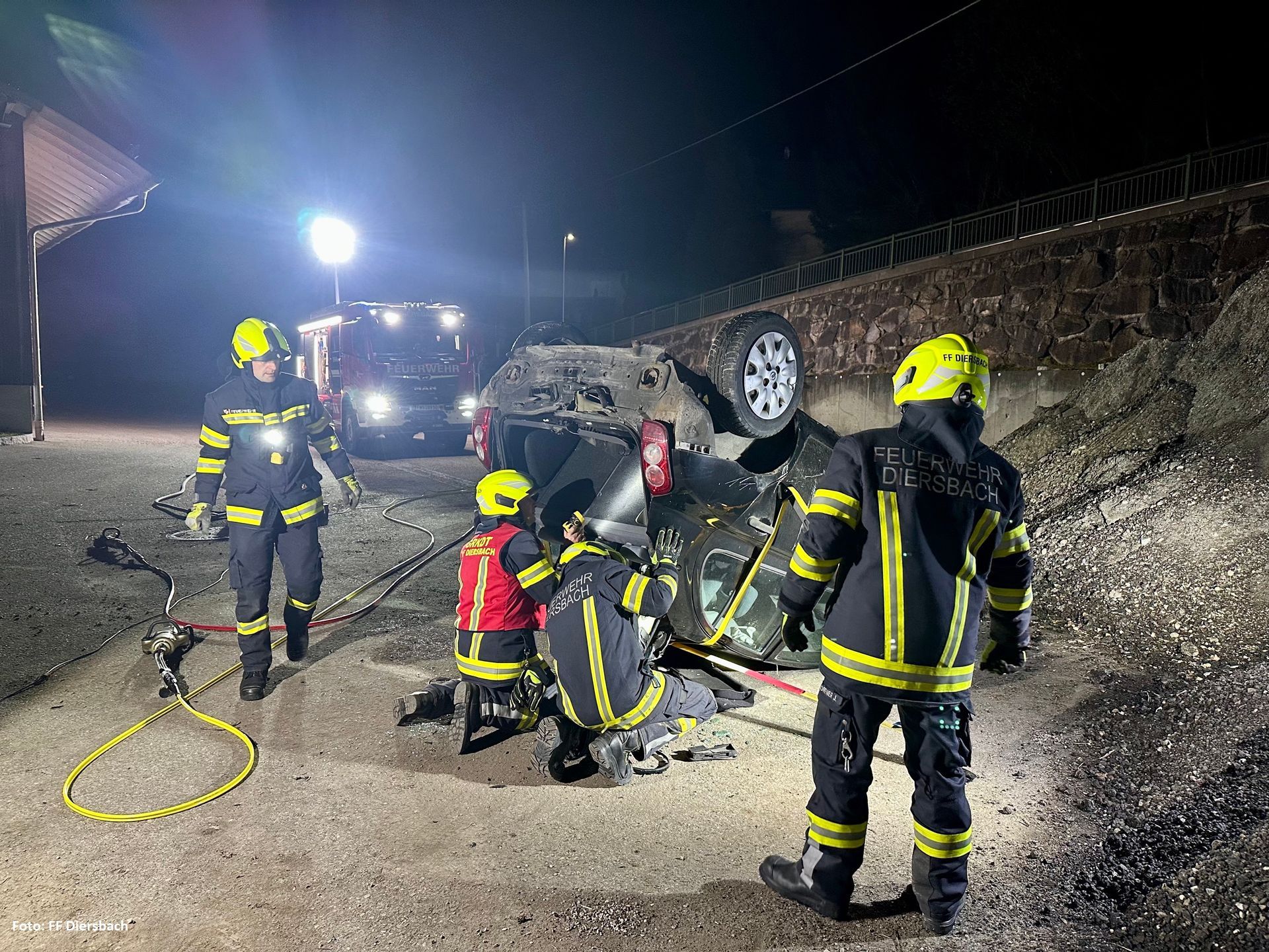 Es wurde ein Verkehrsunfall mit 2 PKW angenommen, in dem ein Lenker eingeklemmt wurde. Mit gemeinsamen Kräften wurde nach der Lageerkundung der Lenker mit dem hydr. Rettungsgerät befreit. Ebenfalls wurde der Übungsplatz abgesichert, ausgeleuchtet und ein 2-facher Brandschutz wurde aufgebaut.